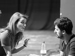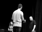 The actors in it play in a very almost hyperrealistic way just to pinpoint all the horror that comes from the terror in it. The text is a dark comedy, of course, so combined with the actor's way of play, it brings a kind of thriller Tarantino situation on the stage for the audience to witness.